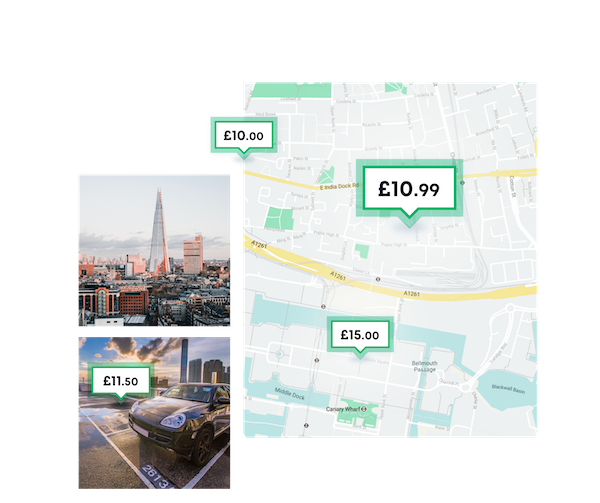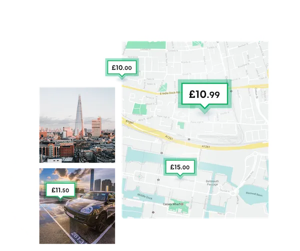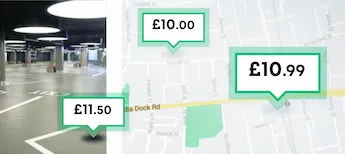 A map showing multiple parking locations in London